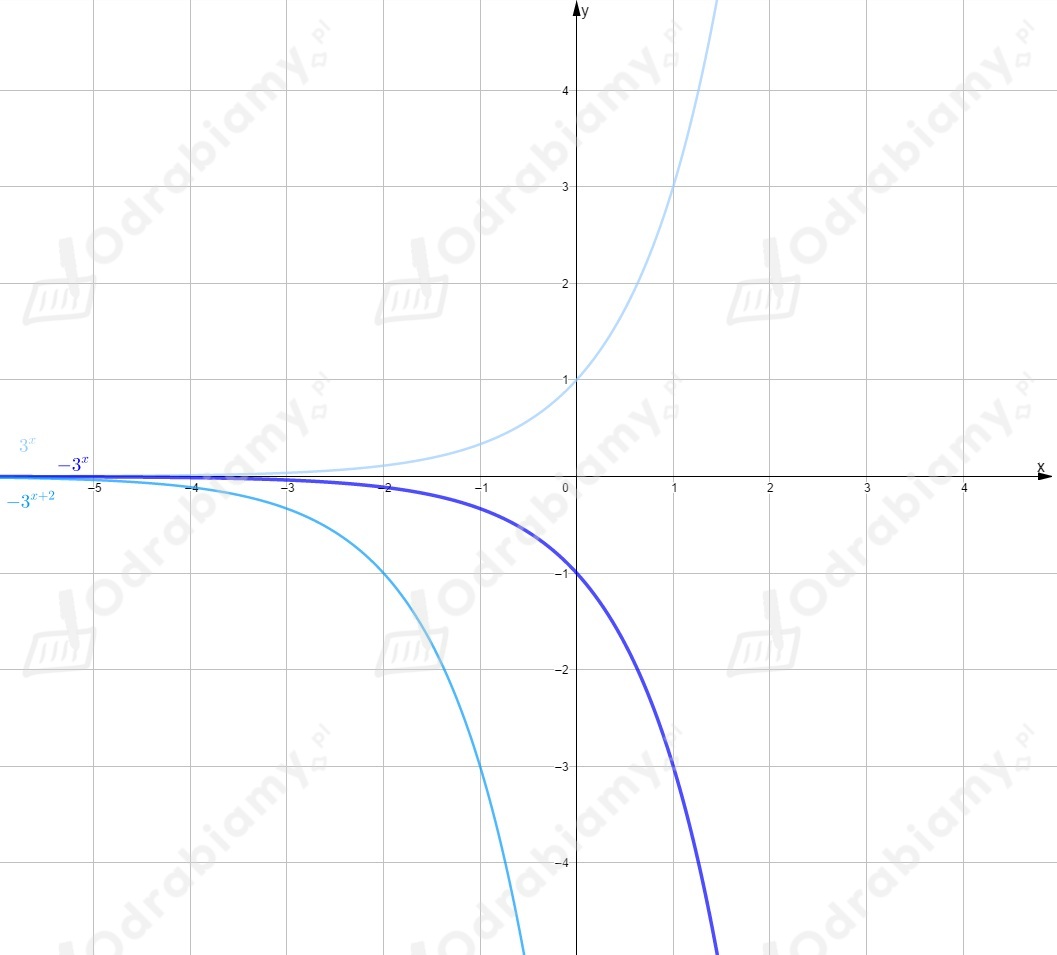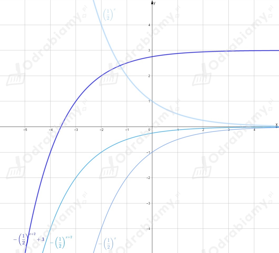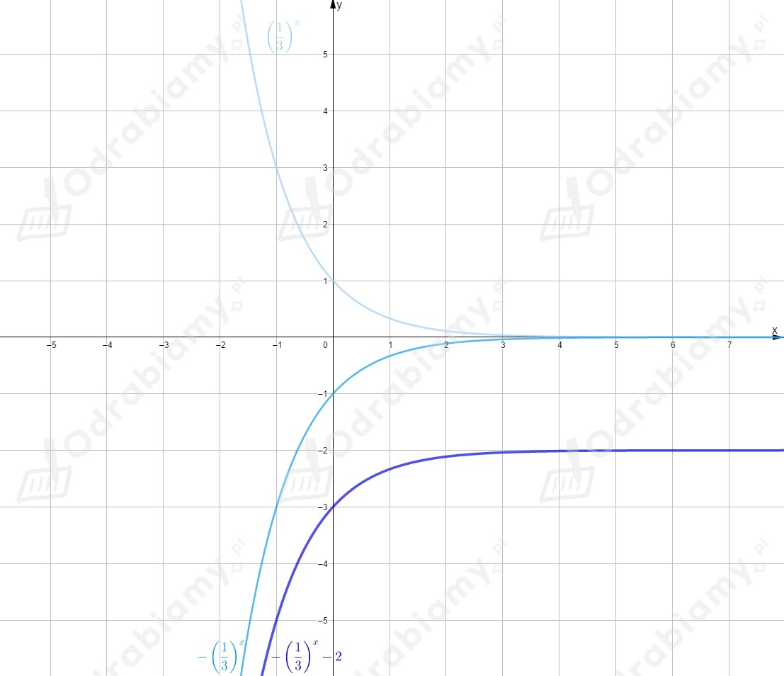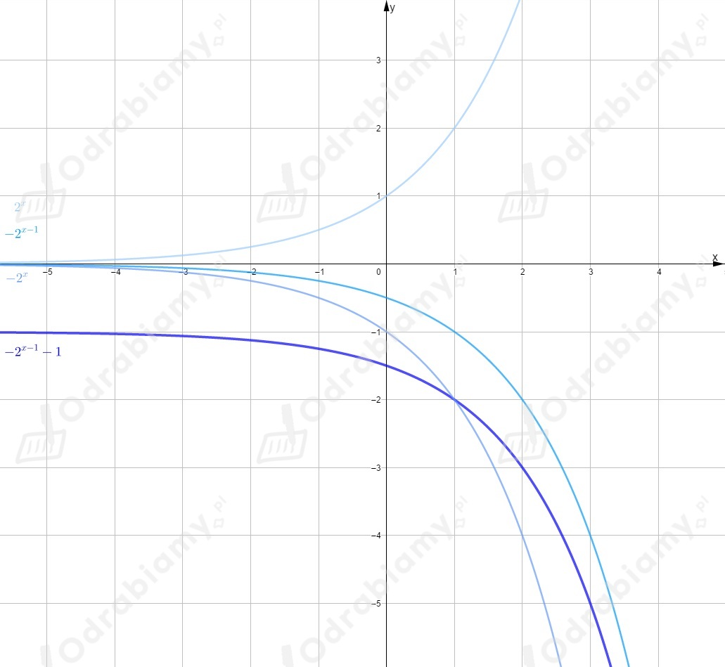 Następnie wykres ten przesuwamy o jednostki w dół wzdłuż osi .