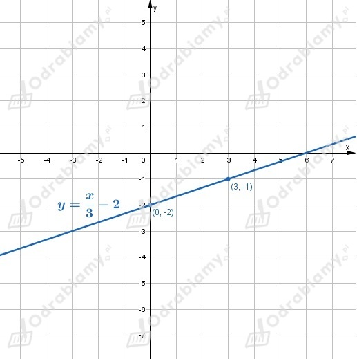 Obliczamy wartości funkcji f(x)=x/3-2 dla dwóch dowolnych argumentów: