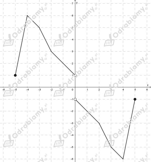 Zauważmy, że skoro funkcja f jest nieparzysta i malejąca w przedziale (0,2> to również będzie malejąca w przedziale <-2,0).
