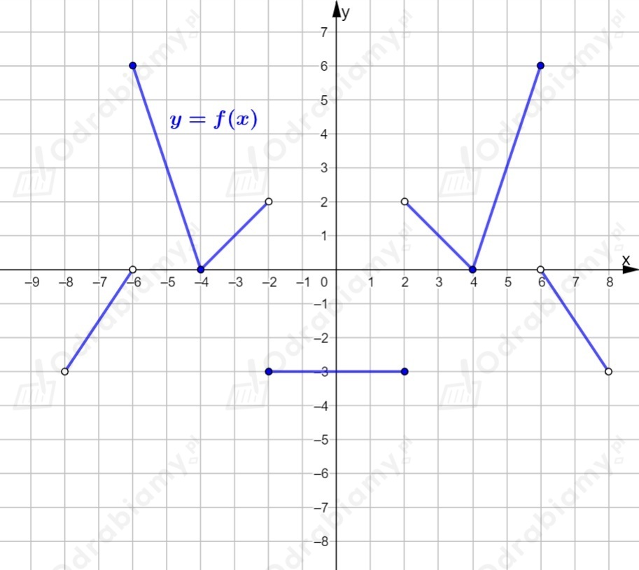 Przykładowy wykres funkcji f, która spełnia warunki zadania: