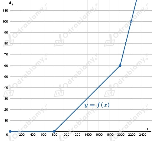 Gdy dochody nie przekraczają 800 dolarów, czyli x ∈ <0, 800>, to podatnik jest zwolniony z podatku, czyli f(x)=0.