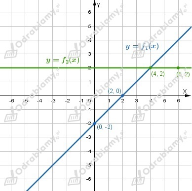 Wykres funkcji f2 przechodzi przez punkty (4, 2), (6, 2).