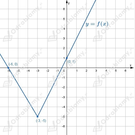 W rozważanym przedziale miejscem zerowym funkcji jest liczba -6.