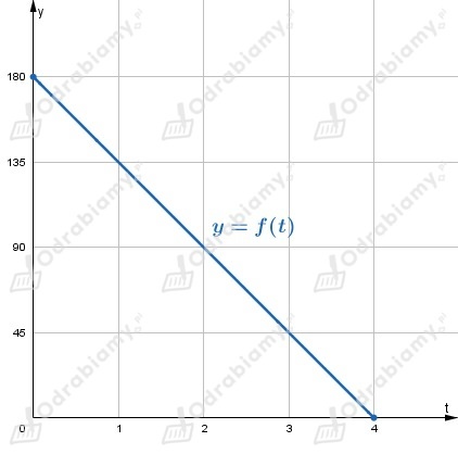 Wiemy, że funkcja f przyjmuje wartości z przedziału <0, 180> (kolarz na początku znajduje się w odległości 180 km od mety; na końcu znajduje się na mecie, więc w odległości 0 km od mety). Stąd: